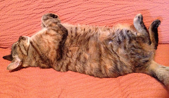 メシ、トイレ以外はこのまんま。 お前さんゆるみすぎです。 うちに来た頃はノラネコだったはずだが、あの頃のギラギラしたサバイバル感は 100%消えております(^◇^;) ネコはいいなあ。 責任ないし仕事せんでええし(笑)