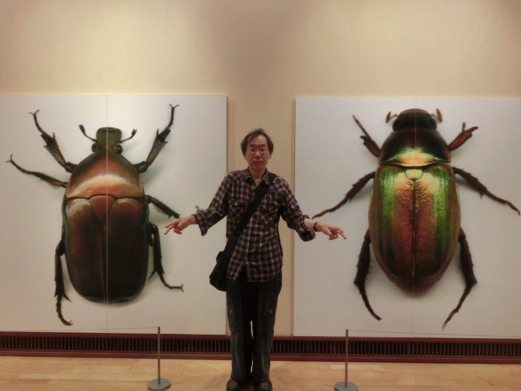 この写真での 私のテーマは 『ブイブイ』。 左はカナブン。 右は 「なんとかコガネ」。(名前忘れた) で、「ドウガネブイブイ(←同じような甲虫の名前)」は 関係無いんだけど、 ブイブイのポーズ と なっている。