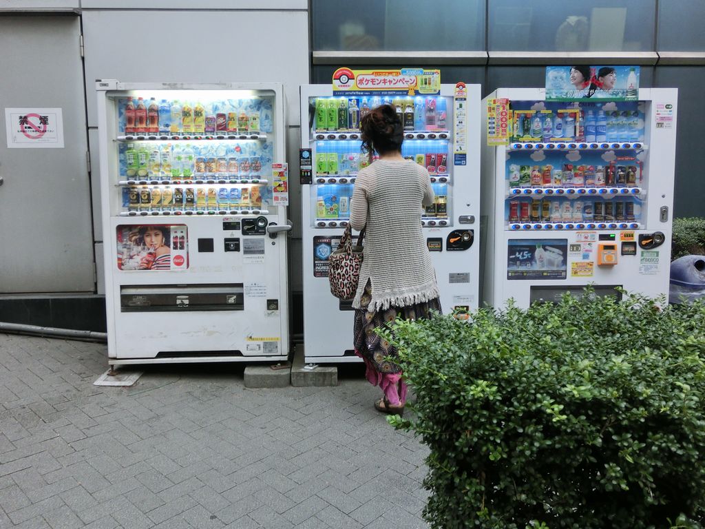 ♪写真は、渋谷ラママの前の建物に並んでる自動販売機で飲み物を買う人。