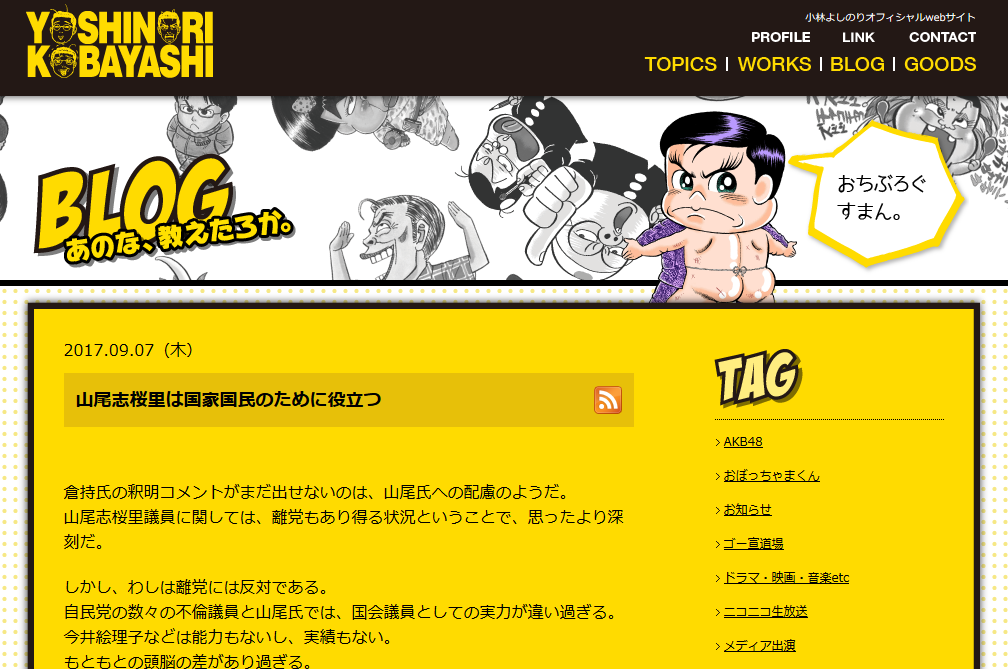 違うって。それは小林よしのりが言うてること。わしは山尾は辞職して当然と思ってる。東大出なんて誰も意識してないよ。人の不倫をあれだけ責め立てておいて自分が逆の立場になったら知らん顔