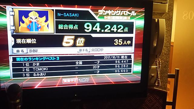 獲れなかった。プレミアムDAMって部屋だけど、ここじゃあ採点に雲泥の差があるんだ。