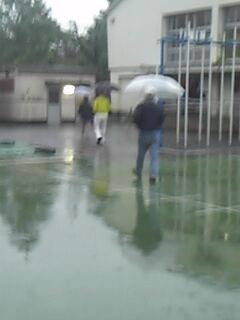 強き雨の中の投票所