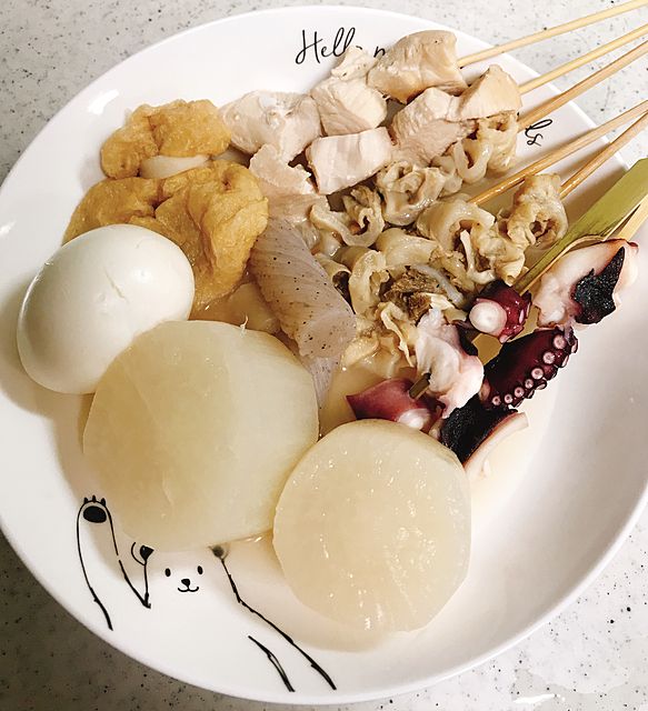 我が家のおでん スジ串 とり串 タコ串 大根 卵 コンニャク 餅きんちゃく (´~`*)ムシャムシャ …