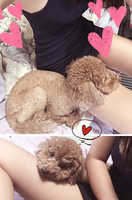 太腿にワンコ あったかい(*^_^*)笑 今日は雨ですな…( ´•ω•` )