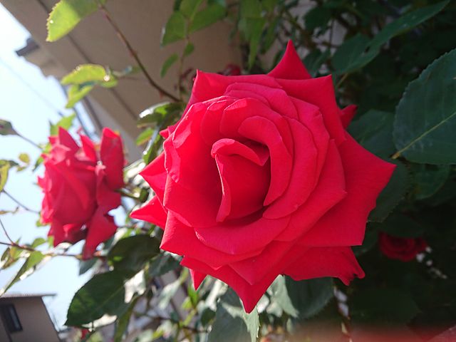 あ、今日薔薇が綺麗に咲いてました。
