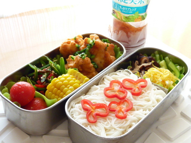 最近暑いのでご飯の代わりにそうめんを持たせてます。