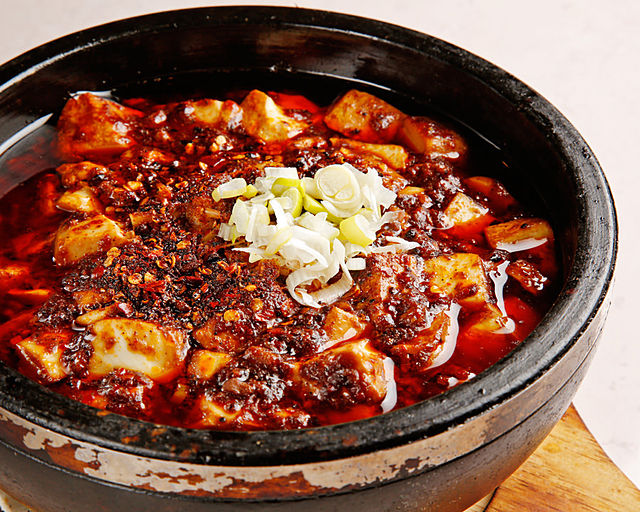 「陳」のマーボ豆腐もこの位色が濃いです~!