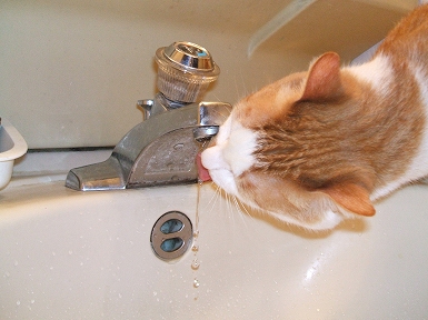 蛇口を覗き込んで、出ないと人の顔をジッと見つめて催促!知らん顔してるとニャーンと鳴いて催促!