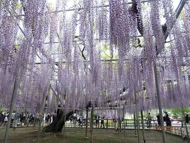 80mもある白い藤のトンネル 潜り抜け。 100年は有ろうかと言う大木の藤棚