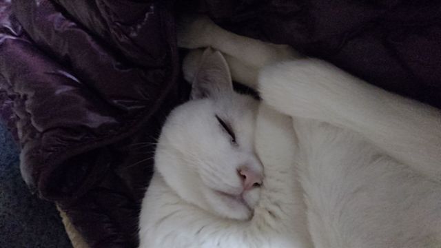 なるべく薄いパジャマ着ます。足元はそのままですね。自らの発熱作用と布団に委ねます。にゃんが気が向いたら暖かくしてくれますよ。