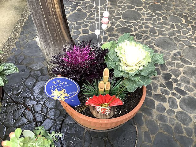 あと2時間で新年を迎えますね 我が家の玄関先にお正月らしい鉢植えを飾ってみました️ みなさんは、どんなお正月飾りをするのかな