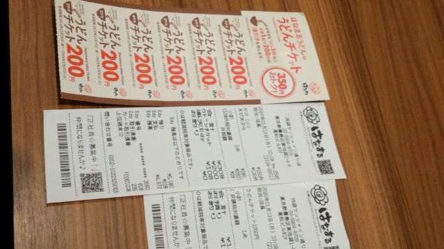 うどんチケット」¥200x7枚=¥1400分で ¥1050 だというので購入しました。