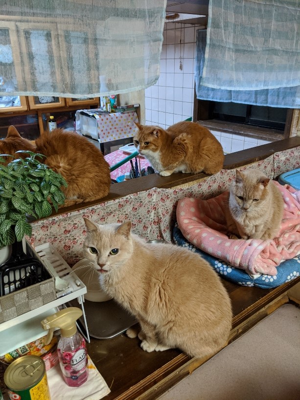 こんなにニャンコいるんですか? いいなあ。 犬も猫も飼えるなんて、お金持ちですね! 私も飼いたいけど、お金ないし、車ないし、ニャンコ病気になったらお金かかるから飼えないです。