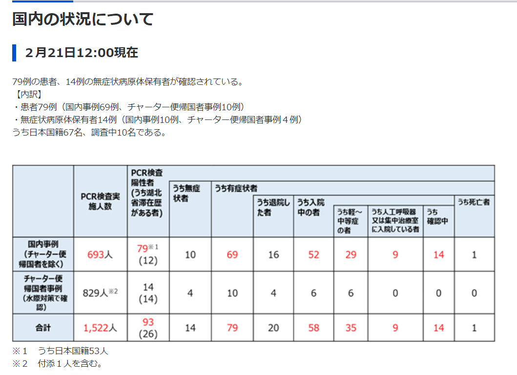 因みに今日、厚労省HPを見ると24日正午の時点で総検査数1,742名、内陽性144名(8.3%)にアップデートされてた。