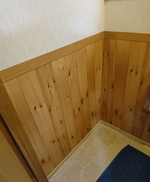 今まで壁紙だけだったのですが、腰壁があることによって雰囲気が変わっていい感じです(^○^)
