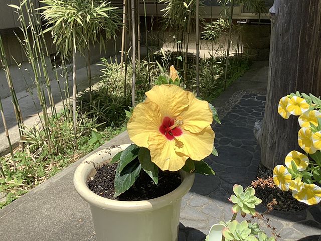 先日のデジログで紹介したハイビスカスは、買ってきたとき すでに咲いていたものでした。 でも、昨日花開いたのは正真正銘ウチで育てた花ですw やっぱりうれしいですね~