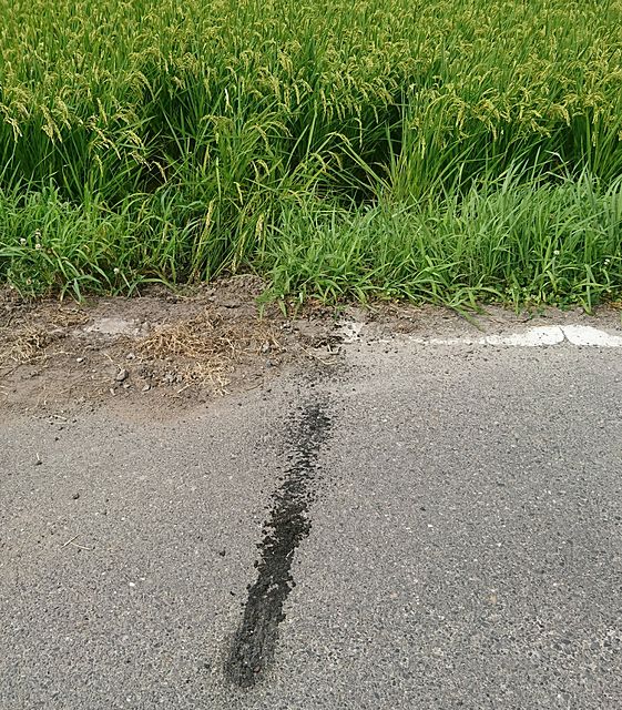 やはり、車が突っ込んだ部分の稲は倒れてしまってましたね(ノ´Д`)ノ