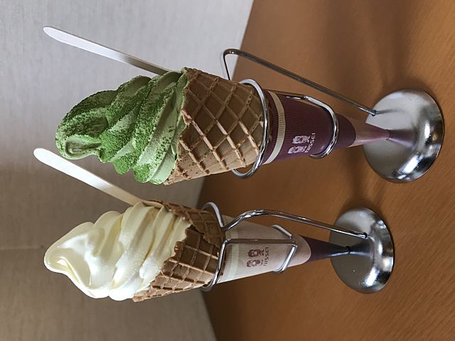 お茶屋さんの抹茶ソフトクリーム 抹茶の粉末を増し増しでたべました