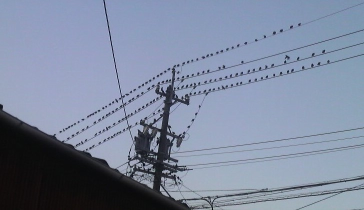 そして夕方になるとお腹いっぱいになったのか、電線で一休みする姿もよく見られます(´∀`)