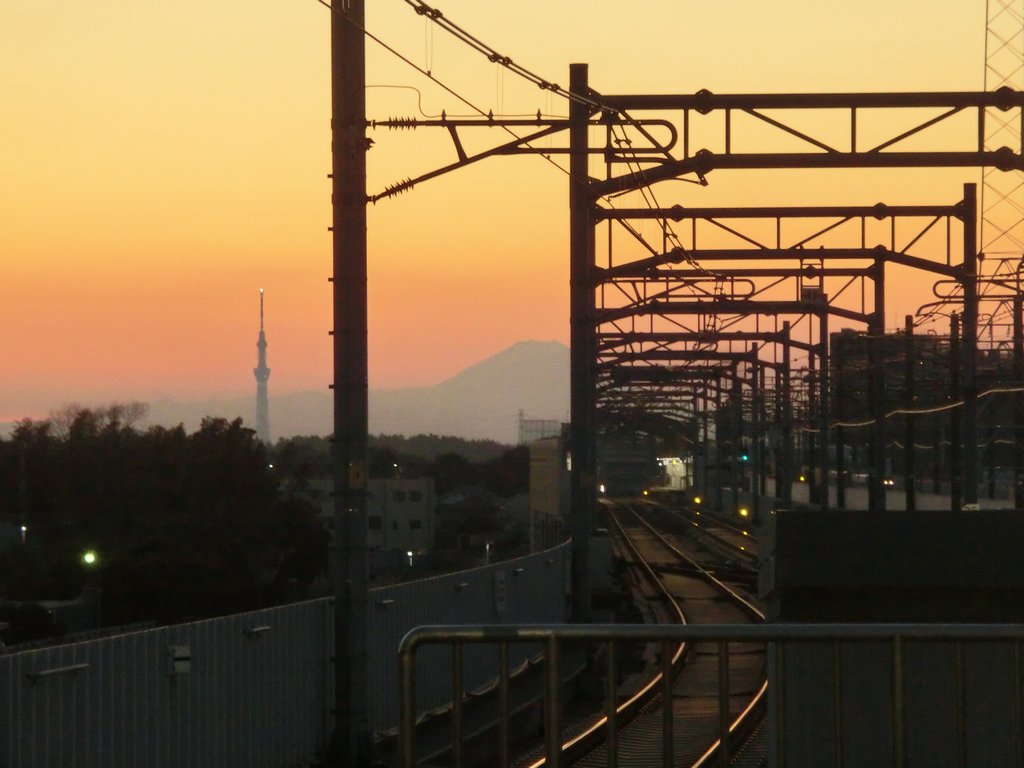 新鎌ケ谷(しん かまがや)のスーパー「イオン」に行った帰り、 新京成の新鎌ケ谷駅のホームから 富士山が見えた。