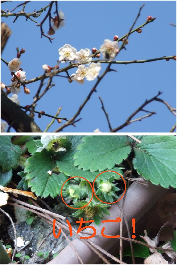 梅、満開! 青い空に白い梅の花が綺麗に咲いていたので