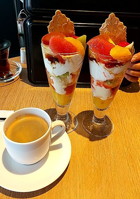 初めて来たサクラマチ 友達と待ち合わせをして 昼間からワインとビールで乾杯し サーロインステーキ、サイコロステーキ ミニサラダ、肉屋のポテサラ 牛ほほ肉の赤ワイン煮込みを食べて モロゾフのカフェで カスタードプリンパフェを食べた 肉もいいけど 私は甘いものと珈琲の方が大好きで 帰りには桃のタルトを2個買って 夕食後のスイーツに