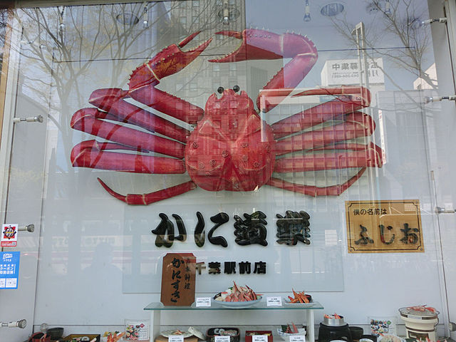 千葉駅の近くの店。「かに道楽」。 店頭のカニに名前があった。『ふじお』 ここらは住所が千葉市 中央区 富士見・・・ そこから付いたのか?