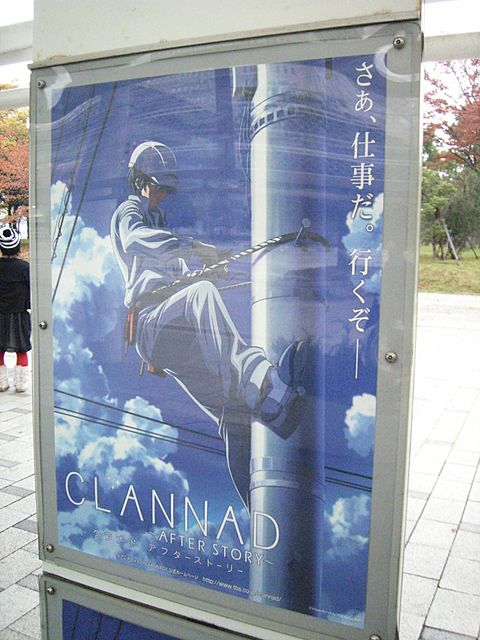 写真は、2008年にコミティアというイベントを見に行った時、 近くに貼ってあったポスター。(私はアニメに関して詳しくない) 「電柱に登って工事をする人」の典型例の絵。 普通の人は知らないだろうけど、 この姿勢、ものすごく疲れる。ものすごく痛い。 電柱は、横の棒が 段々に 互い違いに出ている。 この絵の人の場合、左足が下になってるから、右足は掛けてるだけ。 体重は左足一本にかかる。 電柱の横の棒は 太さが2㎝ぐらい。 つまり、 左足の 足の裏の わずかな所に、全体重がかかる。 すぐに足がしびれてくる。