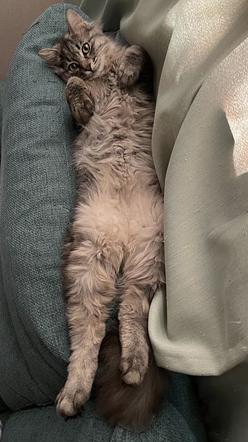☆特徴:元野良猫さん、長毛、ビビリでツン、鳴き声(おやつ時は、か細く鳴く)。