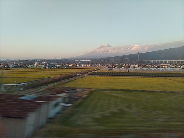 写真は、前の日に撮影したほぼ同じ場所からの写真。 のぞみの「速度」が体感できる写真になりました。たまたまですが、前日こだまから撮影した新富士駅付近の「田園風景」です。 面白い体験ができました。