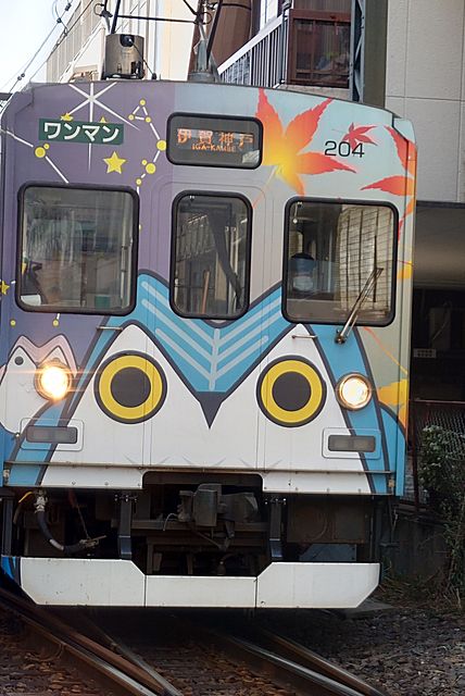 そうそう、地元を走る電車で忍者電車とフクロウ電車があるとこの前書きましたが、フクロウ電車の方は写真を載せてなかったので載せておきますね♪