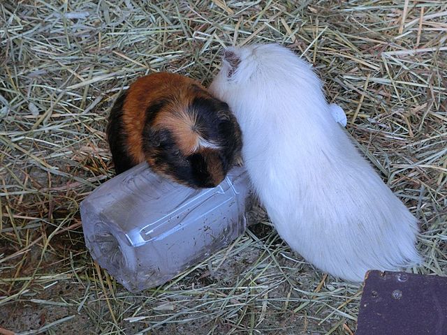 モルモットちゃんたちも暑いんですね〜 ペットボトル涼しそう