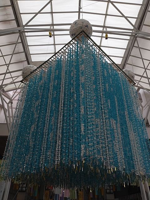 今年の目玉は 一番町と大町との交差点にある「八万六千羽鶴」。