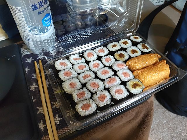 頂き物の海苔巻&おいなり。まぁ安物なんですが無碍に出来ません。美味しく頂きました。