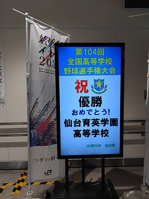さて今日の仙台は高校野球で仙台育英が夏の甲子園優勝ってことで 夕方にJR仙台駅に出てみれば 試合終了1時間経たぬのにも関わらず号外が出たりテレビ局がインタビューに出てたりポスターだ垂れ幕だと掲出される‥‥早いな~。