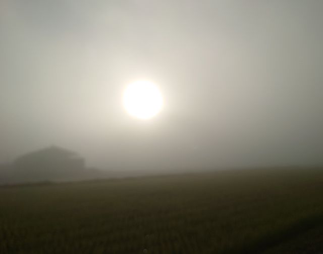 霧で太陽がメチャクチャ大きく見えてます(*^^*)