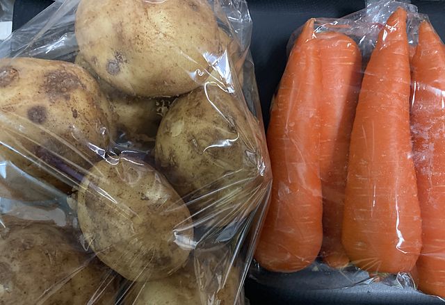 写真は、今朝の業務スーパーで仕入れたん。男爵9個199円と、人参5本99円は安い。