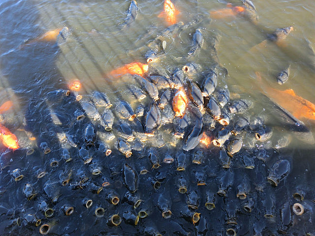 『オレが本気を出す時が 来た!!!』 と、本気で 池の中に エサを投げた。