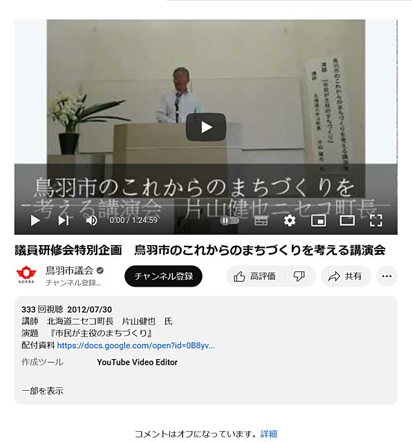 【 『北海道虻田郡ニセコ町』の『町長』の『片山健也殿との関係』に付いて 】