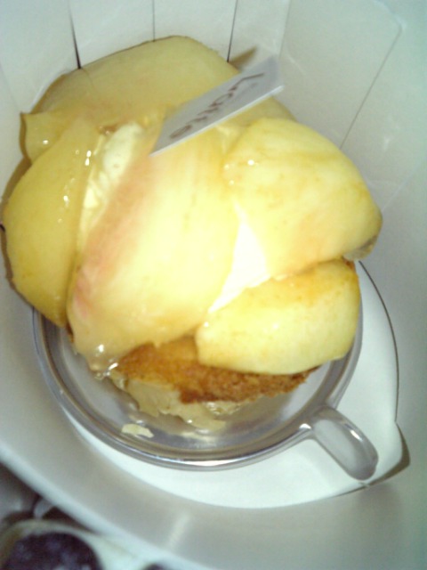 フィーコもいいけど、ペスカ(桃)のケーキです。下はカスタードパイになってます。白桃に、生クリームがトッピングされています。これが、一番美味しいです。また、買ってこようと思ってます。