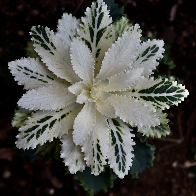 冬枯れの庭にひっそりと咲き誇る葉牡丹