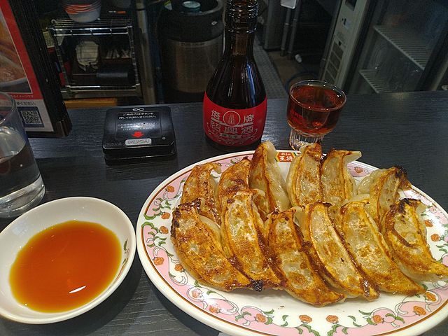 写真はよく焼けた餃子(コーテル・リャンガー)! 紹興酒はザラメ付き。そう従業員の女の子も注文時の「ザラメ」の意味するところは知っているけど、どの程度の量を小皿に入れるかは教わってないみたいで、最初小皿いっぱいに入れてきました。さすがにもったいないので、「1/4で良いです」と減らしてもらいました。まぁ~ 紹興酒を熱燗で飲むお客さん、そうそう居ないのかな? 私の大好物。
