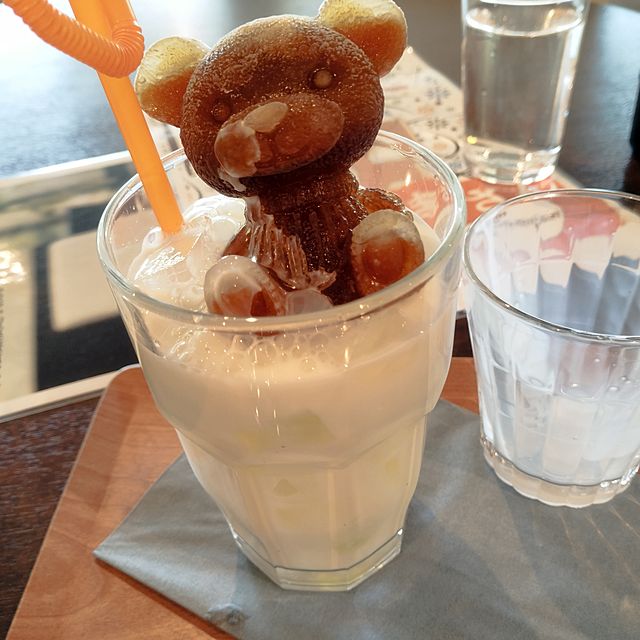 可愛い、、、クマさんの形の容器に入ったコーヒーを凍らせてるのかな? 何処で飲めますか?