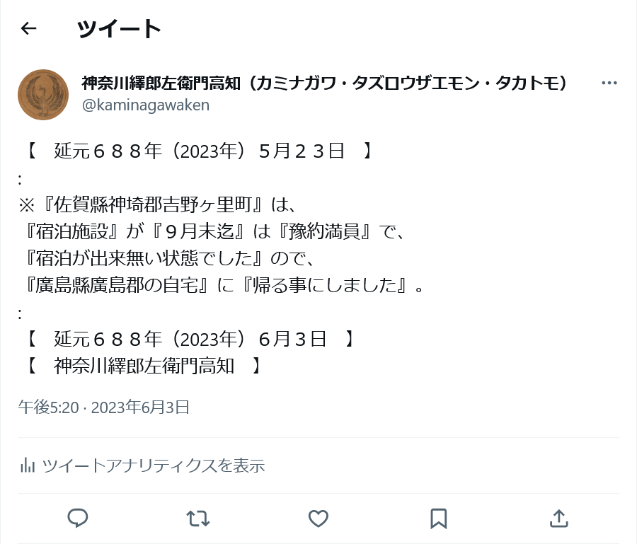 『令和五年(2023年)五月二十三日』に付いて