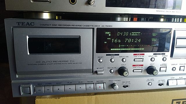 このカセットとCDが一体になったデッキ、2015年にティアックの多摩センターショールームで買いました。もう「絶版品」の最後の2つのうちの一台。カセットが「Auto Reverse」という最後の個体でした。でも逆側のローラーがひび割れしてしまって不安定なのでもう Forward でしか使ってませんけど。でも機能的にはちゃんとオートリバースしています。「メカトロニクス」全盛期のニッポン製品の一つだね。私の最初に入った会社もこういうメカを作っていました。この製品にも採用されているかも。