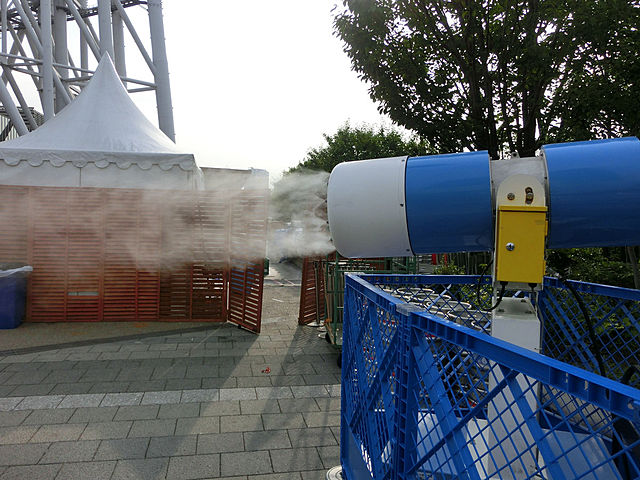 巨大ミスト発生装置。 これ、やっぱり涼しいね。
