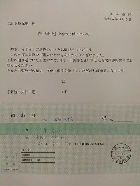 『令和五年(延元688年・2023年)九月六日』は『隈本縣菊池市史』を『獲得』