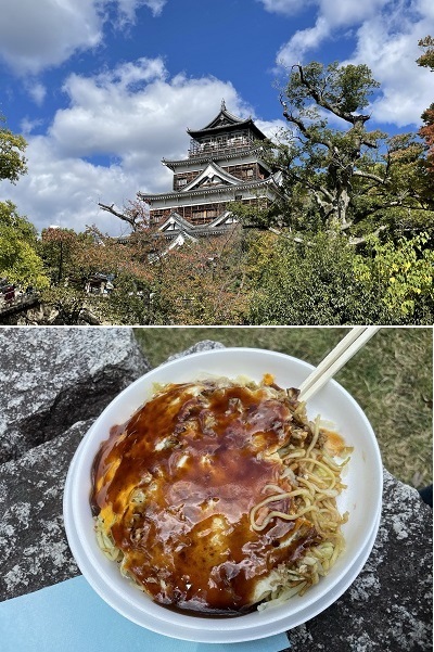 青空の下、広島城を見ながら食べられるのはなんとも贅沢ですね。