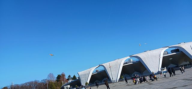 天候に恵まれ、適度な風もある、成人の日、駒沢オリンピック公園の中央広場では、凧揚げ の親子連れが大勢。 平和な風景です。