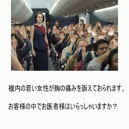 若い女性が胸の痛みを訴えてます、お客様の中にお医者様はいらっしゃいますか?